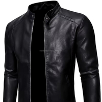 Men's High Quality PU Leather Stand Collar Motorcycle Jacket Winter Casual Zipper Cardigan 5XL Size Plain Dyed Nonwoven Slim